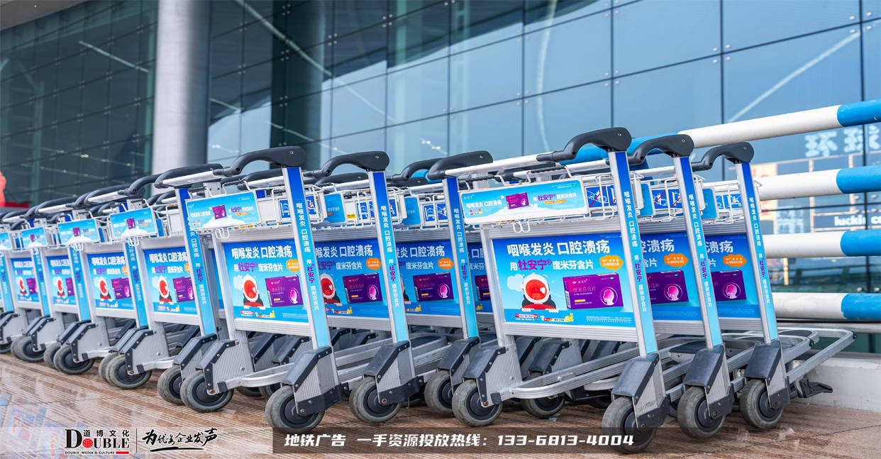 手推车是旅客在机场不可或缺的随行工具,无论乘机、接机还是送行,几乎每位旅客都会与其产生接触。这种高频次、长时间的伴随式曝光,使广告信息反复进入受众视野,有效加深品牌印象。近期知名咽喉护理品牌杜安宁含片在重庆机场投放手推车广告,借助元旦节假日旅游高峰,精准触达大量出行人群,品牌认知度在西南区域显著提升。
