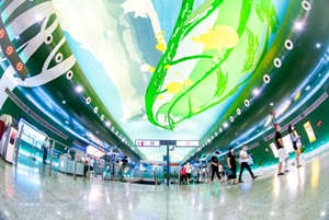重庆轨道交通1号线小龙坎站美如画,黄葛树叶、银杏树叶、桂花树叶以涂鸦形式,呈现在车站墙上。让乘客感受到车站的独特魅力。