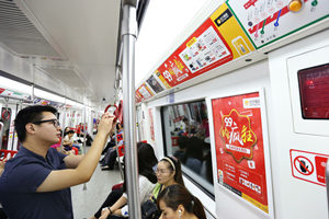 道博文化传媒独家代理的2号线轨道外包车广告,通过近660平米的巨幅画面,穿梭于繁华都市之中,广告位醒目,传播半径覆盖更大,为娃哈哈品牌带来了二次传播